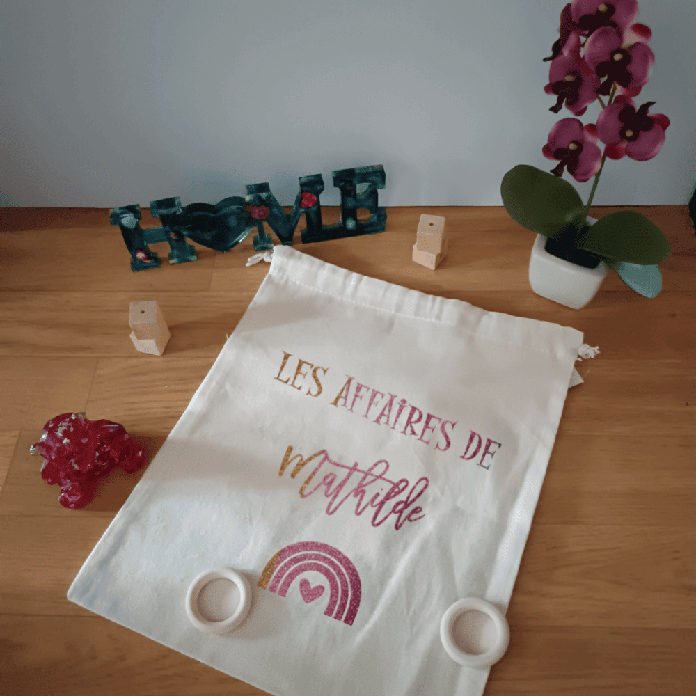 Un petit sac trop mignon pour ranger toutes les trésors de votre enfant ! Ce pochon personnalisé avec son prénom est idéal pour y glisser ses affaires de crèche, d’école, de sport ou même ses petits jouets préférés 🧸✨.