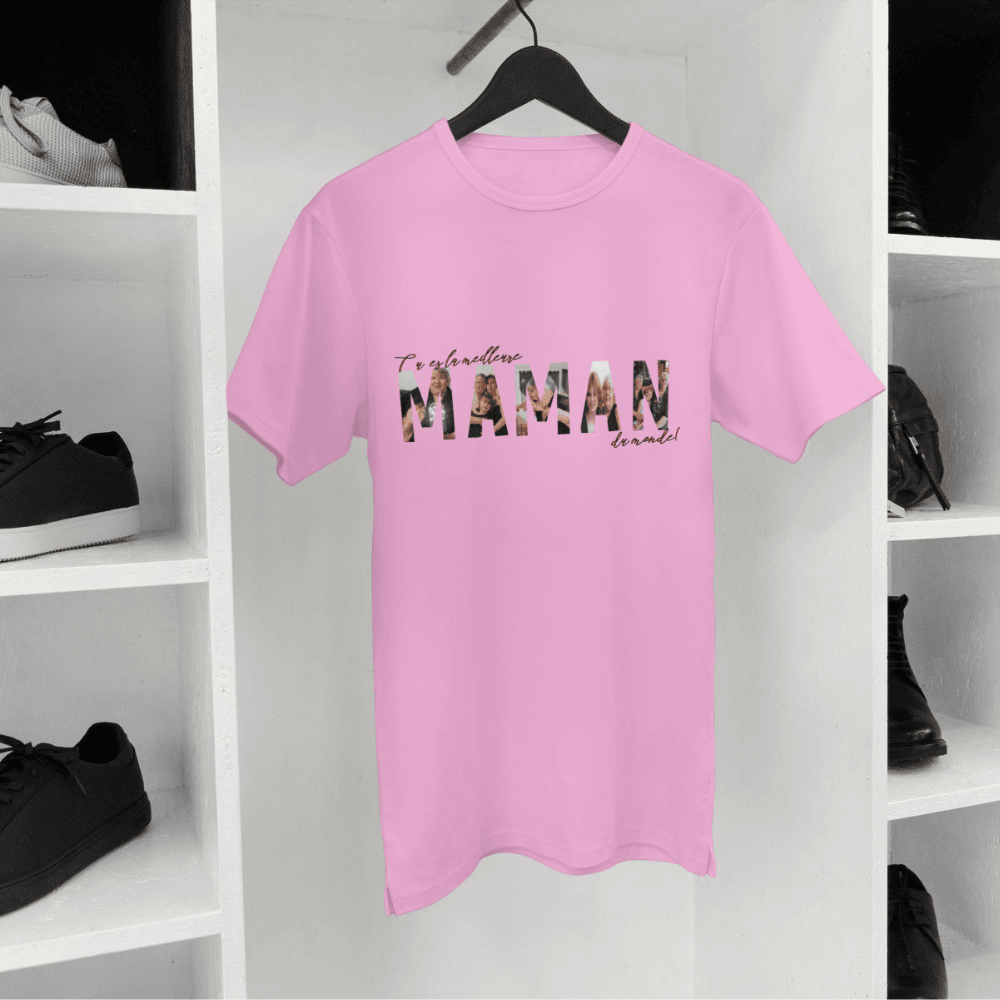 Offrez un tee-shirt vraiment unique avec ce modèle où chaque lettre est soigneusement découpée dans une photo différente de votre choix 📸✨.
